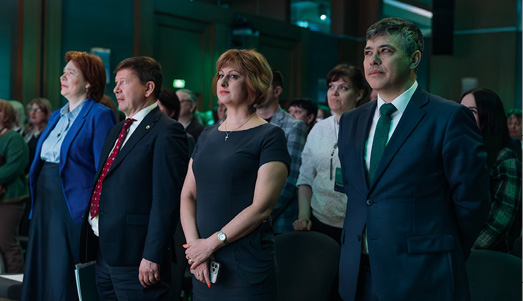Торжественное открытие конгресса началось гимном Российской Федерации (рис. 2). В адрес участников мероприятия было направлено приветственное обращение губернатора Московской области А.Ю. Воробьева. В нем он, в частности, отметил: «Детская медицина требует от врача высочайшего уровня профессионализма и человечности. Каждый из вас играет значимую роль в жизни маленьких пациентов и их семей. Вы не только боретесь с болезнями, но и дарите надежду, уверенность и спокойствие людям, которые доверяют вам самое дорогое — своих детей. В современном мире, где медицинские технологии стремительно развиваются, особенно важно своевременно осваивать новые подходы к диагностике, лечению и профилактике заболеваний». А.Ю. Воробьев подчеркнул, что забота о детях является приоритетным направлением работы в Подмосковье, и пожелал участникам конгресса плодотворной работы.