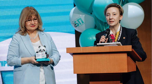 Presentation of the "5P Children's Medicine" Consortium Award to O.V. Sertakova, Head of Department for Monitoring Medical Activities of the Moscow Oblast Ministry of Health