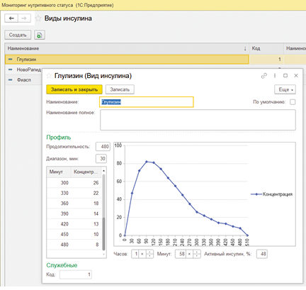 Справочник «Виды инсулина», описание профиля инсулина