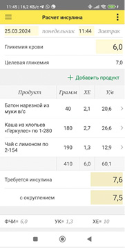 Для того чтобы пациент (или его родитель) мог самостоятельно выполнить подобный расчет, было разработано мобильное приложение (для андроид-смартфонов). Основная задача такого приложения — расчет количества инсулина перед приемом пищи.