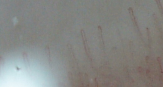 Сapillary loops shaped as a “hairpin”, reduction of edema of the perivascular space (magnification × 400)